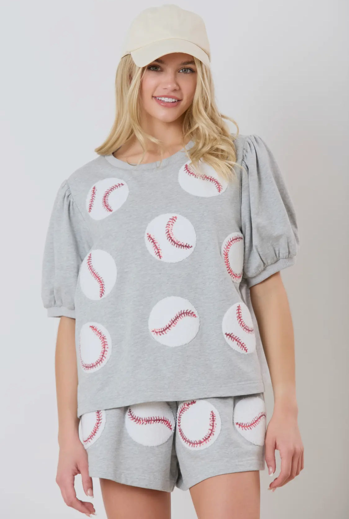 Baseball Towel&Sequin Embroidery Short Set