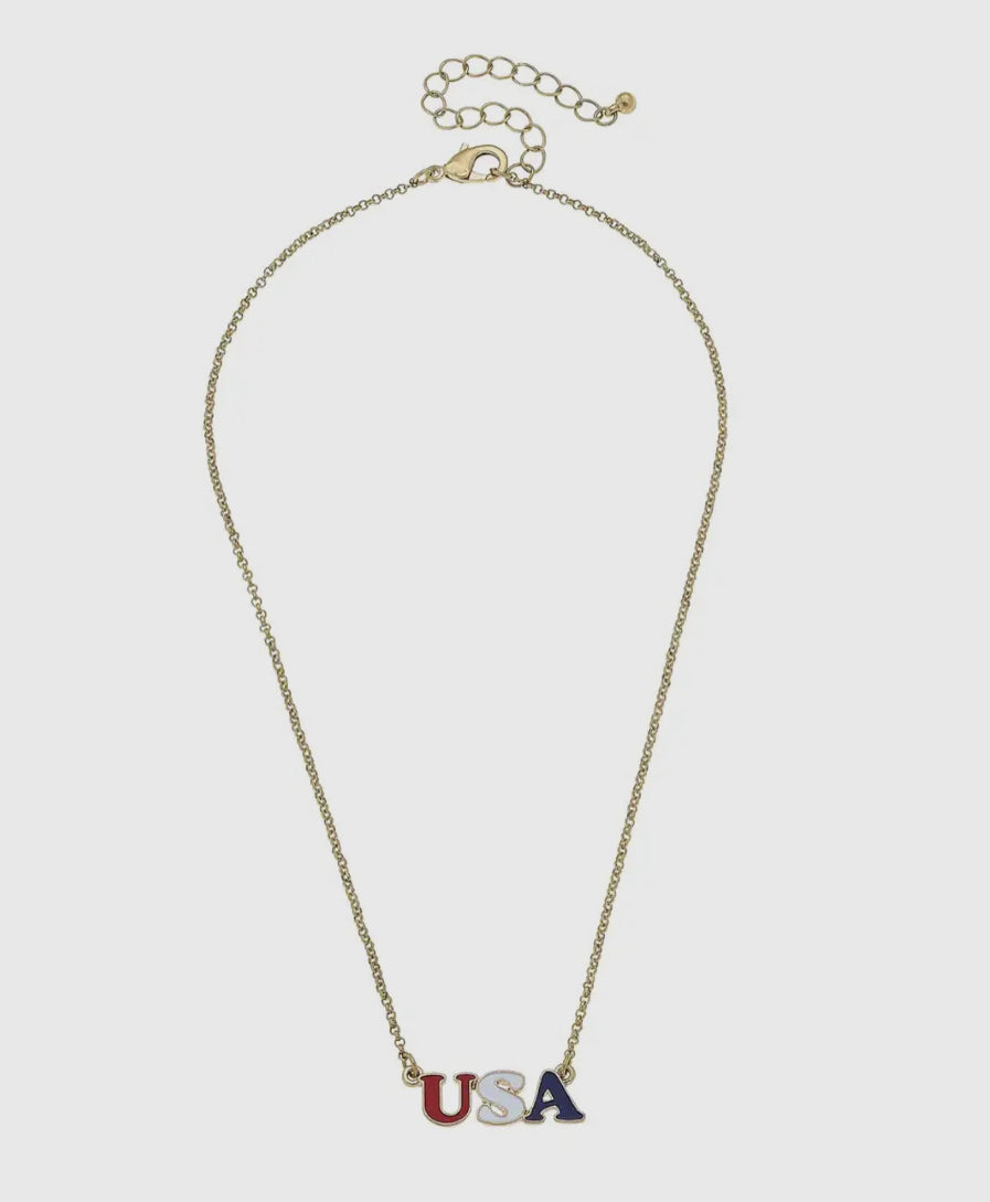 Canvas USA Enamel Necklace in Red, White, Blue, & Worn Gold
