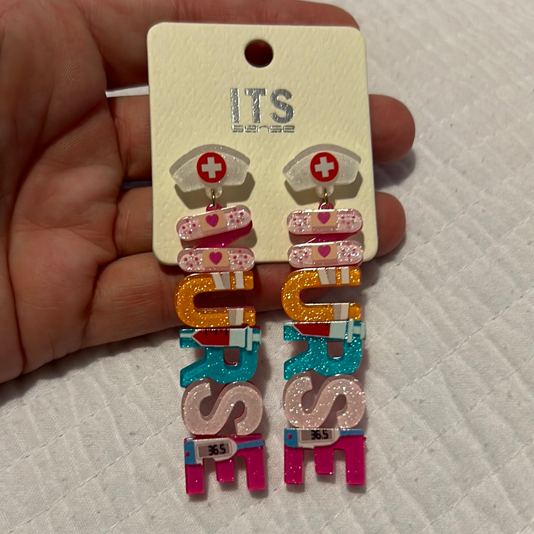Glitter NURSE Acrylic Earrings