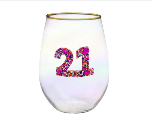 Stemless Beaded Birthday Wine Glass
